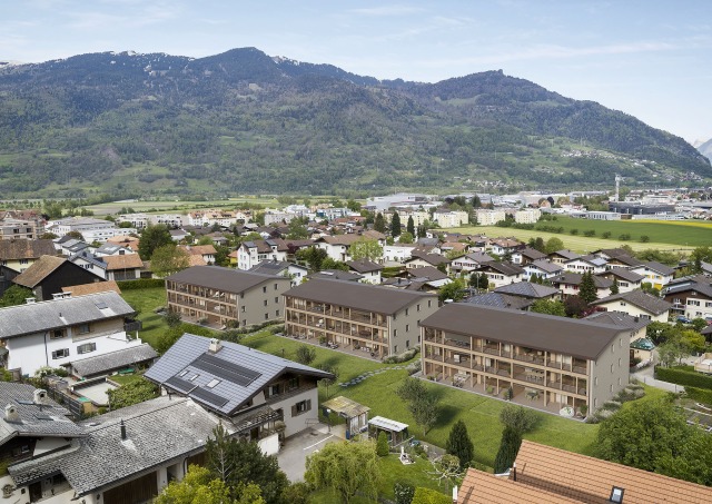 Auch für die Wohnüberbauung Marschlins erarbeiteten die Architekten von Ritter Schumacher ein einzigartiges und besonderes Konzept, bei dem sich modernste Bauweise mit den Elementen traditioneller Bündner Bauart verbinden. Beim Farbkonzept finden sich die umgebenden Berge wieder, die grossen Fensterfronten ermöglichen einerseits den Ausblick auf die Bündner Herrschaft und lassen andererseits jeden Sonnenstrahl in die grosszügigen Wohnungen.