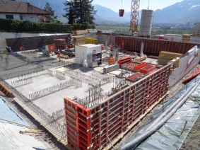 Kaum zwei Monate nach dem Baustart des exklusiven Mehrfamilienhauses RUBIN in Malans ist der Baufortschritt bereits deutlich erkennbar.