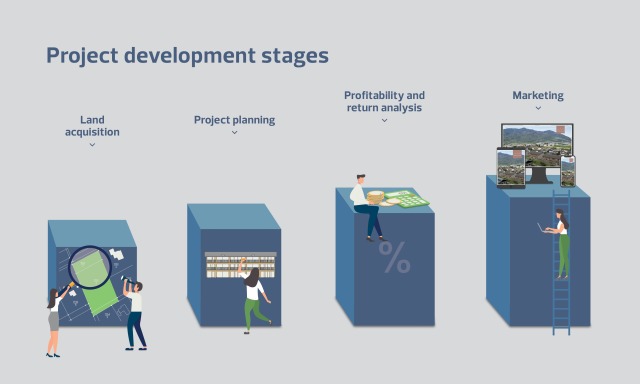 With our extensive expertise, our in-depth knowledge of the market and our large network of reliable partners, we can offer you a helping hand with all aspects of your project, ensuring a hassle-free experience from start to finish. We’ll be happy to manage the entire project for you, from the initial project idea through to handing over the keys. Or, if you prefer, we can just handle individual parts of the process. We are transparent in everything we do, and are fully focused on identifying and meeting your exact needs. This enables us to find the right solution to any challenge.