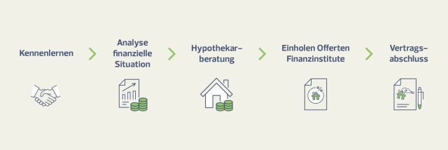 - Während des gesamten Hypothekarvergabe-Prozesses werden Sie von der Anfrage bis zum Vertragsabschluss professionell begleitet.